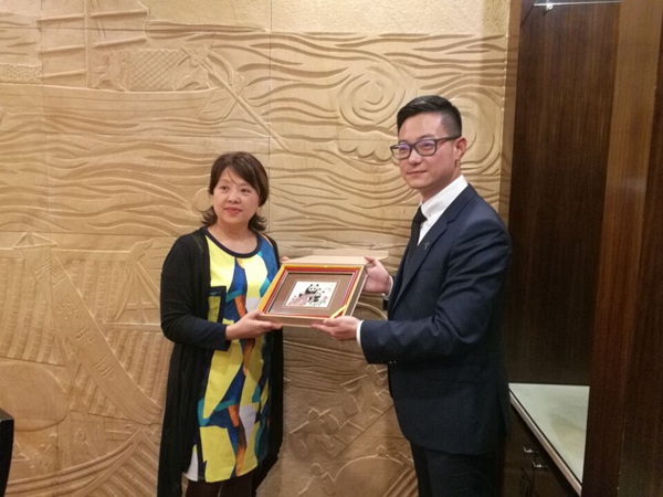 泸州市副市长马宗慧向诺丁汉市市长中国关系助理于集赠送纪念品