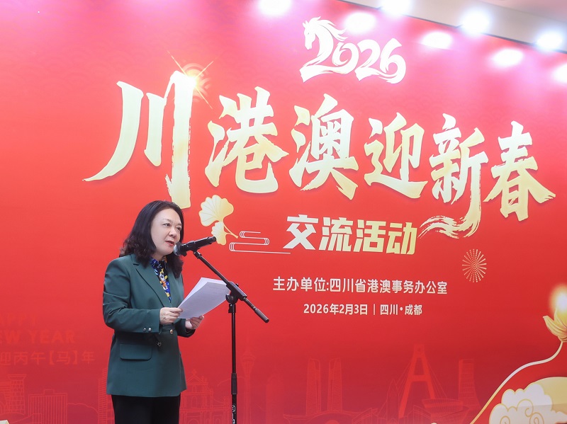 张涛指出,2025年,港澳依托独特优势融入国家发展大局,四川稳步推进高质量发展,川港、川澳各层级交流密切,合作成果丰硕。她表示,川港、川澳交流合作的成绩,得益于省委省政府的高度重视,得益于省政协港澳委员和港澳驻川机构、商协会、企业的积极参与和支持。迈步2026年,希望继续携手,以川港、川澳合作会议机制为牵引,深化合作,互利共赢,为谱写中国式现代化四川篇章贡献力量。
